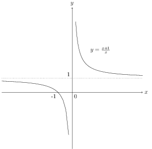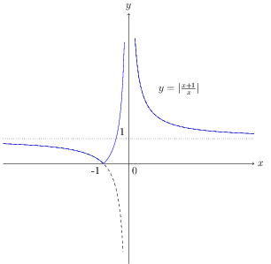 \[ y = \left| \frac{x + 1}{x}\right| \]