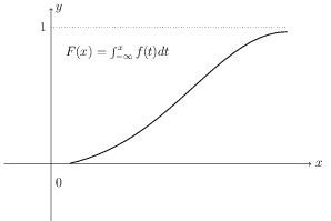 The cumulative distribution of a probability density function f(x), is denoted by F(x) and is defined as: \[ \begin{align} F(x) = P(X \lt x) &= \int_{-\infty}^x f(t)dt \end{align} \ \] which means the density function f(x) is \[ \begin{align} f(x) &= \frac{d}{dx} F(x) \end{align} \ \]