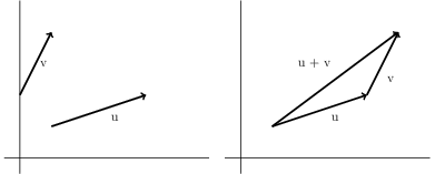 Expressed in component form this is \[ \begin{align} \textbf{u} + \textbf{v} &= \langle u1, u2 \rangle + \langle v1, v2 \rangle \\ &= \langle u1+v1, u2+v2 \rangle \end{align}\]