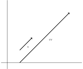 If c is a scalar, i.e. a number, the scalar multiple of a vector v is cv, i.e. a vector c times as long as v in the same direction.