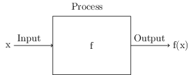 In the diagram above, the input x is processed by the function f to produce an output f(x). The input x is known as the argument of f. Replacing x by a specific value, say 3, and running this input through the process to produce an output of f(3) is known as evaluating the function at the point x = 3.
