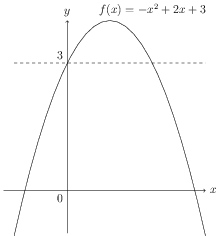 Example to find the points where \[ \ \begin{align} -x^2 + 2x + 3 &= 3 \quad \\ \end{align} \]