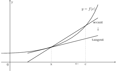As the point c gets closer to x, the secant gets closer to the tangent.